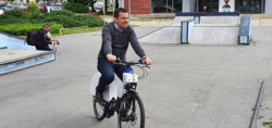 Gradonačelnik Dario Hrebak prvi je isprobao jedan od devet postavljenih gradskih električnih bicikala za iznajmljivanje.