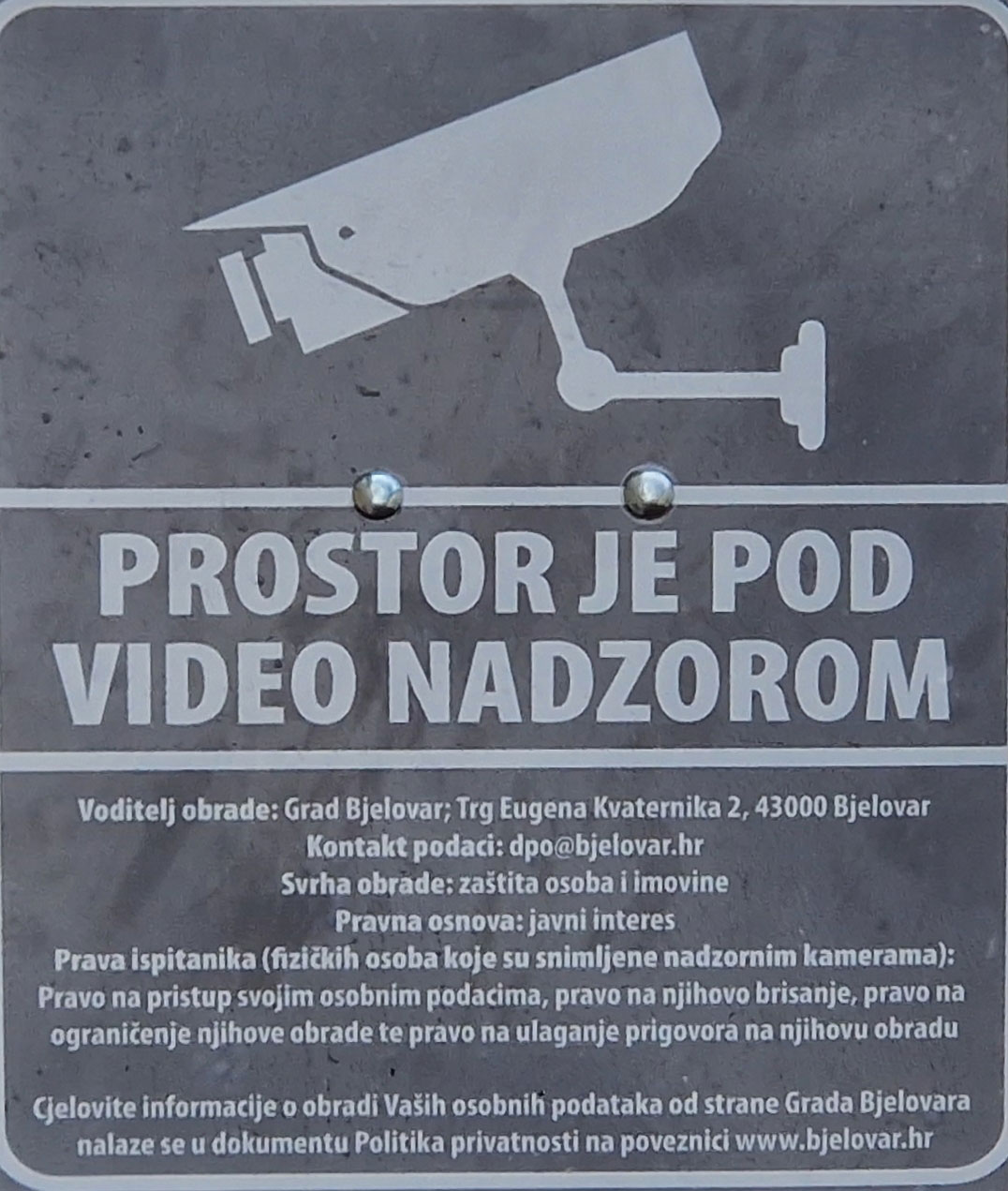 Točnije, praćenje javnih površina, među ostalim, provodi se u cilju sprječavanja komunalnih i prometnih prekršaja, nepropisnog i protupravnog odlaganja otpada, oštećenja imovine Grada Bjelovara, kao i počinjenja kaznenih djela i prekršaja te radi podizanja opće sigurnosti građana.