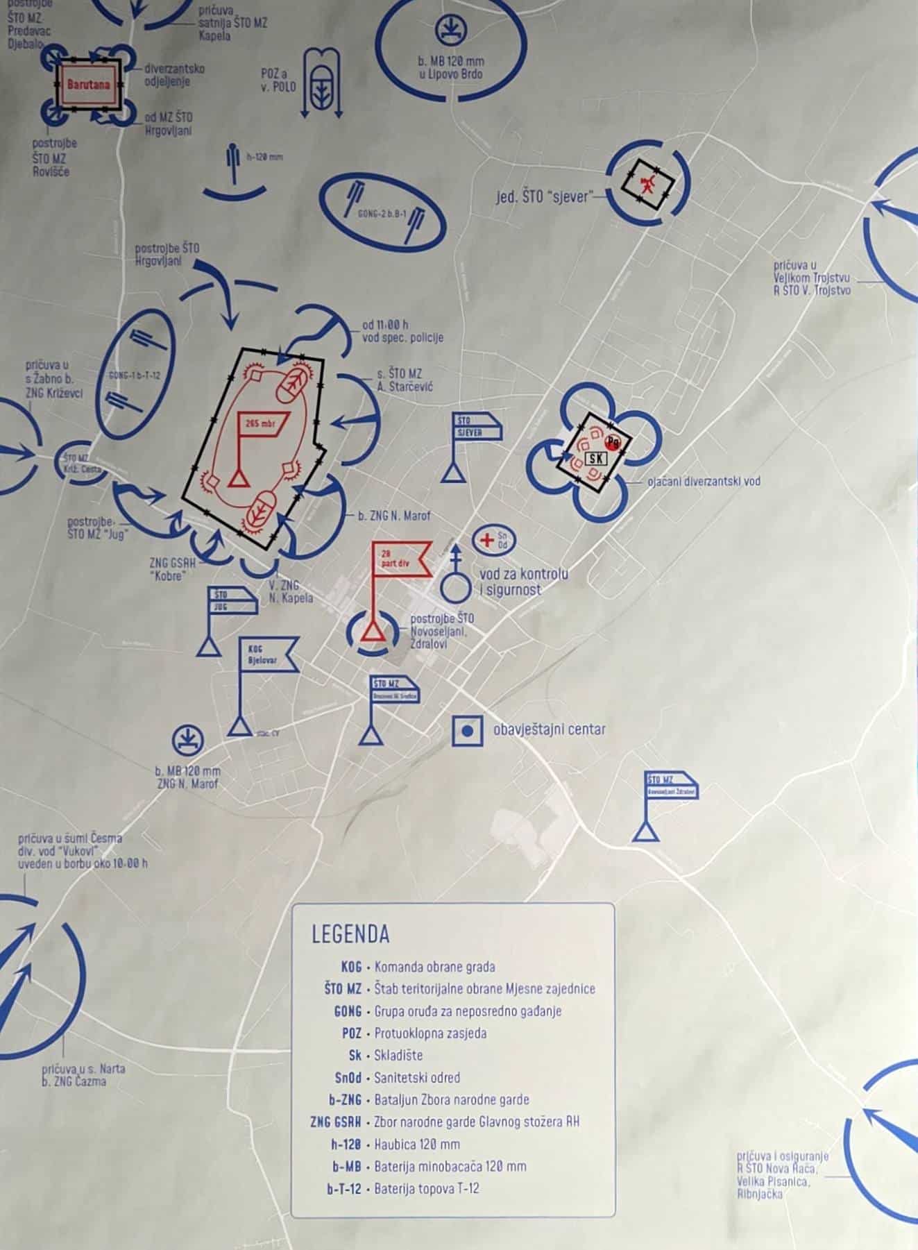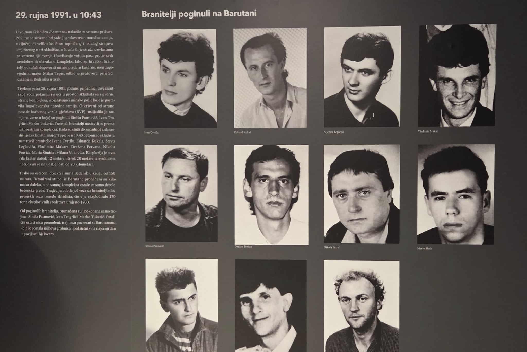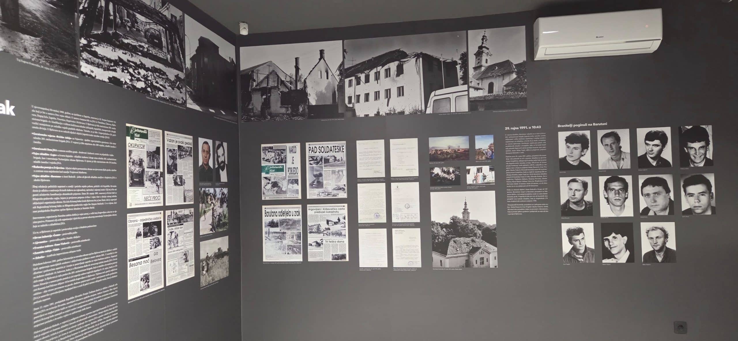 Muzej ima 267 izloženih fotografija na zidovima postava, a više od 700 ih se vrti na ekranima te zorno predočavaju teška vremena Domovinskoga rata. Također, izvješene su fotografije svih bjelovarskih poginulih branitelja, kao i branitelja stadalih na samoj Barutani 29. rujna 1991.
